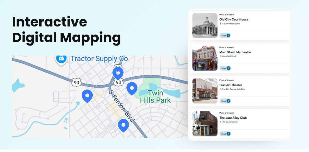 Create digital experiences that highlight landmarks, public art, local businesses, and more