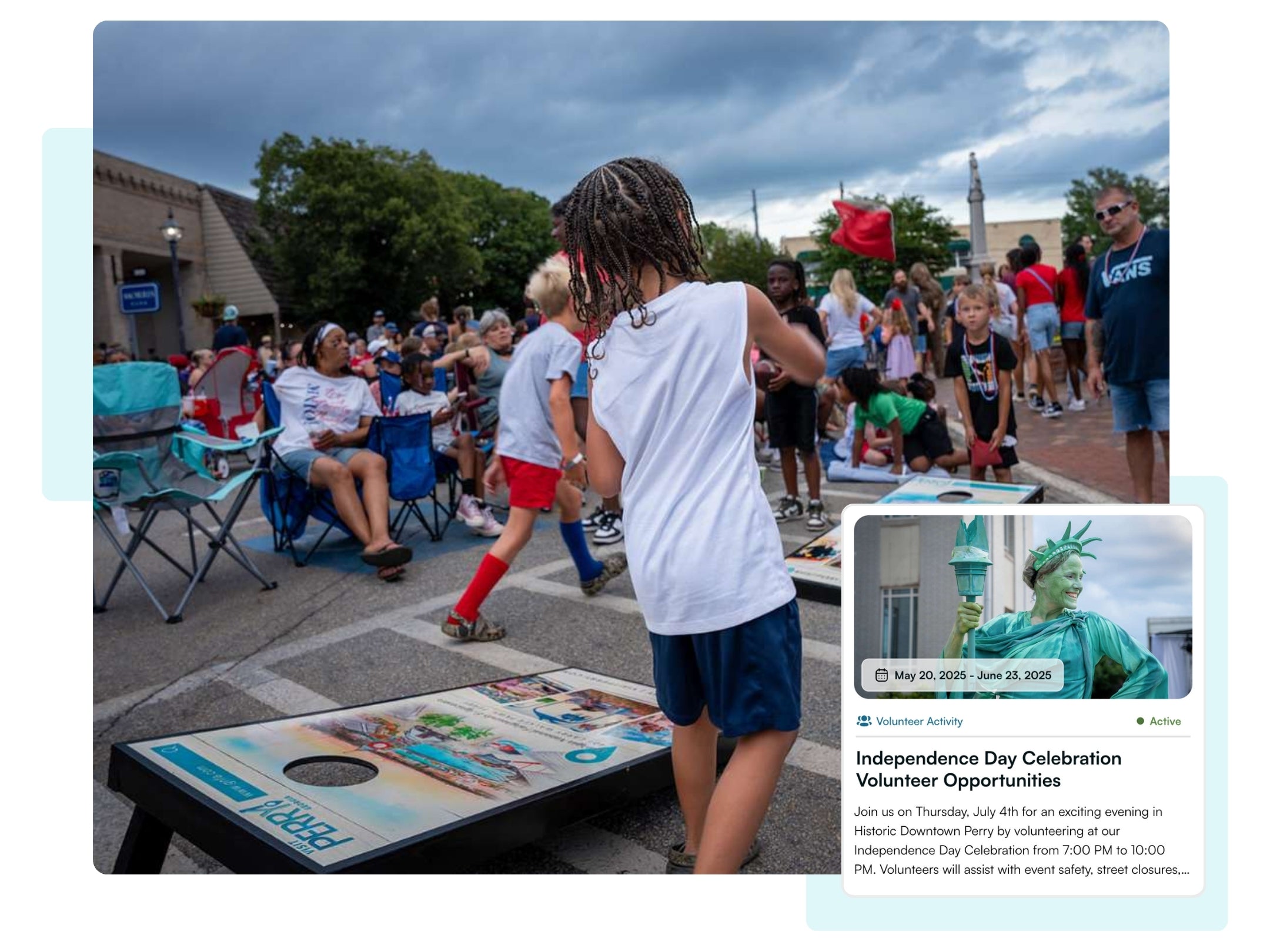 By signing up, you agree to volunteer at the City of Perry’s Independence Day Celebration on Friday, July 4, 2025, from 6:00 PM to 10:00 PM. You confirm that you are 18 years of age or older and have the physical ability to walk and stand for extended periods of time during the event.